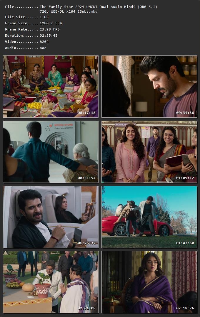 Download Family Star 2024 [Hindi + Telugu] HDRip 720p – 480p – 1080p! Family Star (2024) in HDRip 720p – 480p – 1080p quality. This full Movie is available in multiple sizes, including 1.2GB – 480MB – 2.6GB. Enjoy this South Indian Dubbed Movies 300MB, South Indian Dubbed Movies Download, Action, Comedy, Drama, Romance Movie in Hindi Dubbed. The movie is available in 1.2GB – 480MB – 2.6GB and Mkv format. Based on Comedy, Romance, Drama, Action, this is one of the best Movie available now. Download Now!